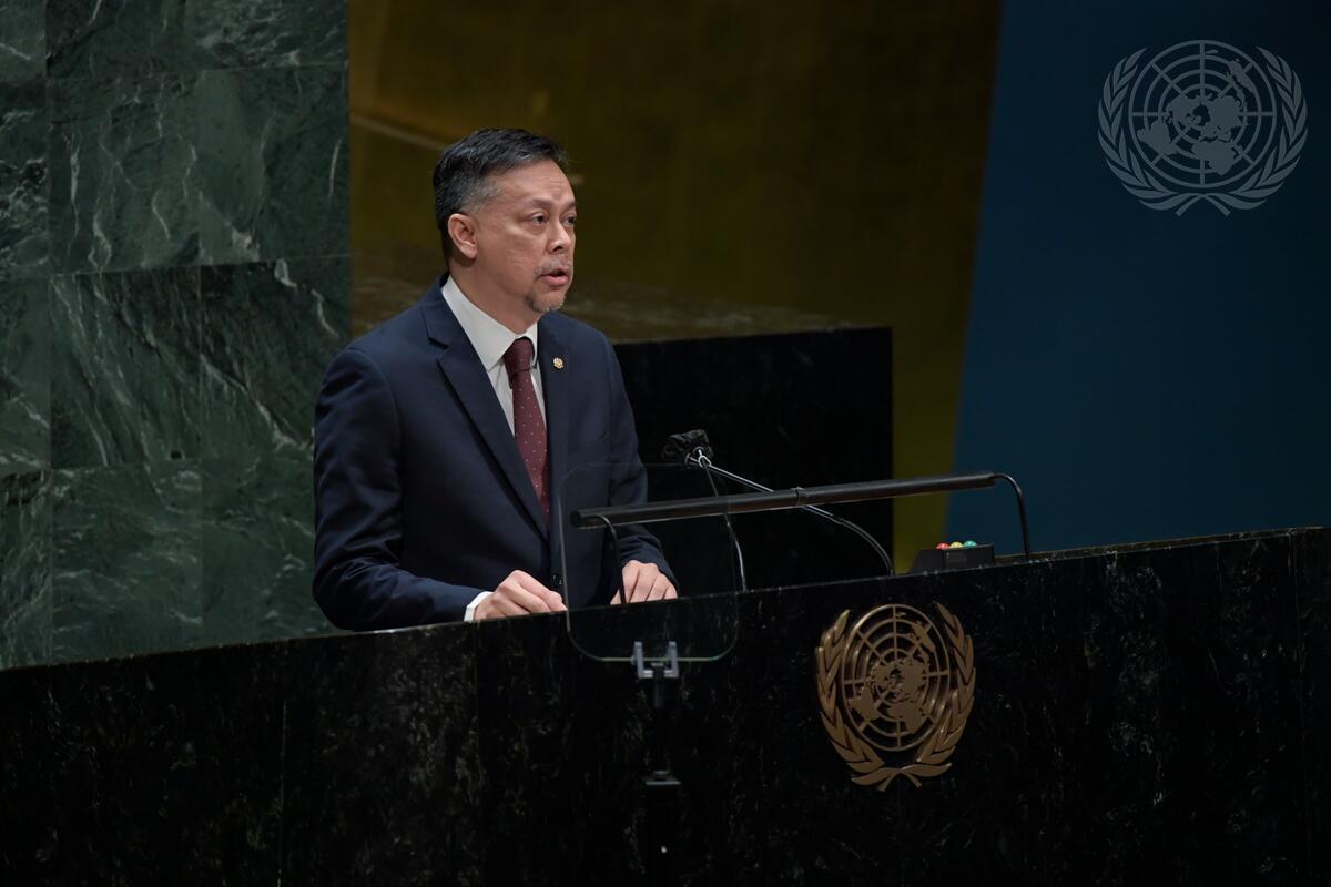 Syed Mohamad Hasrin Aidid, Permanent Representative of Malaysia to the United Nations, speaks at the 78th plenary meeting, on the voting and elections for non-permanent members of the Security Council. The General Assembly elected Albania, Brazil, Gabon, Ghana and the United Arab Emirates to the Security Council for a two-year term starting on 1 January 2022.