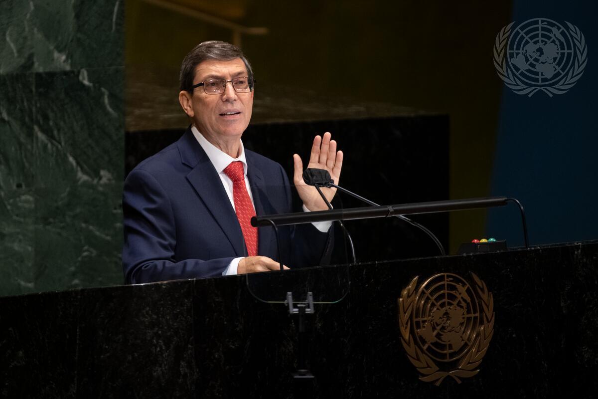Bruno Eduardo Rodríguez Parrilla, Minister for Foreign Affairs of Cuba, addresses the General Assembly meeting on the necessity of ending the economic, commercial and financial embargo imposed by the United States of America against Cuba. The Assembly adopted by recorded vote (184-2-3) the draft resolution A/75/L.97.