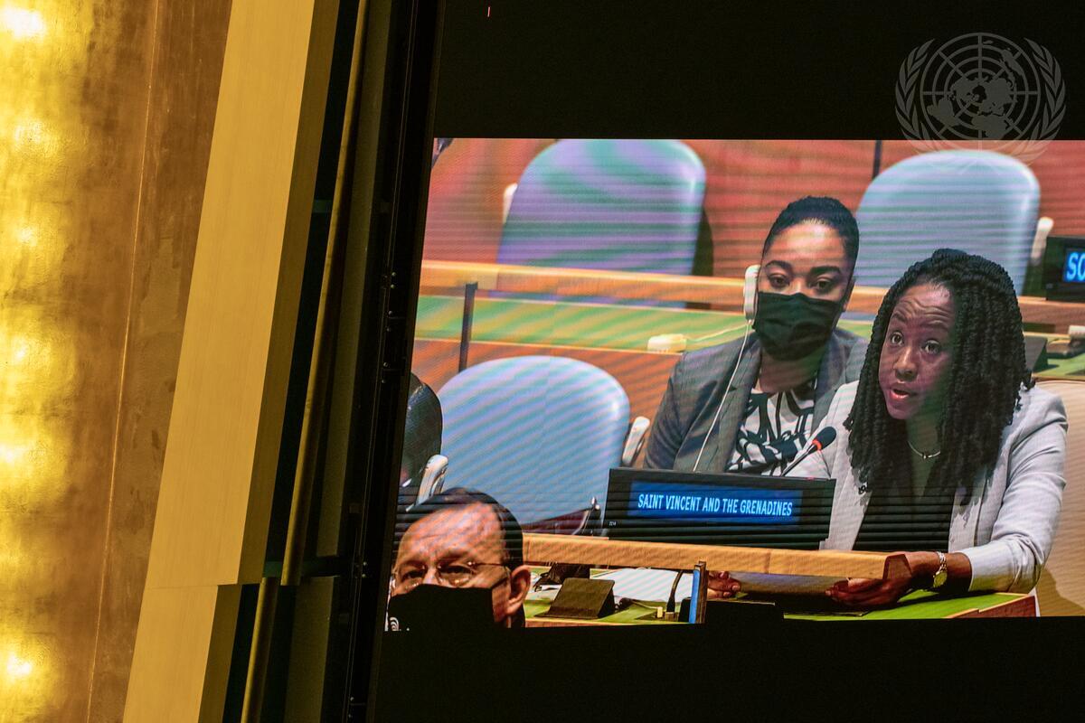 Halimah DeShong, Second Deputy Permanent Representative of Saint Vincent and the Grenadines to the United Nations, addresses the General Assembly meeting on the question of equitable representation on and increase in the membership of the Security Council and other matters related to the Security Council.