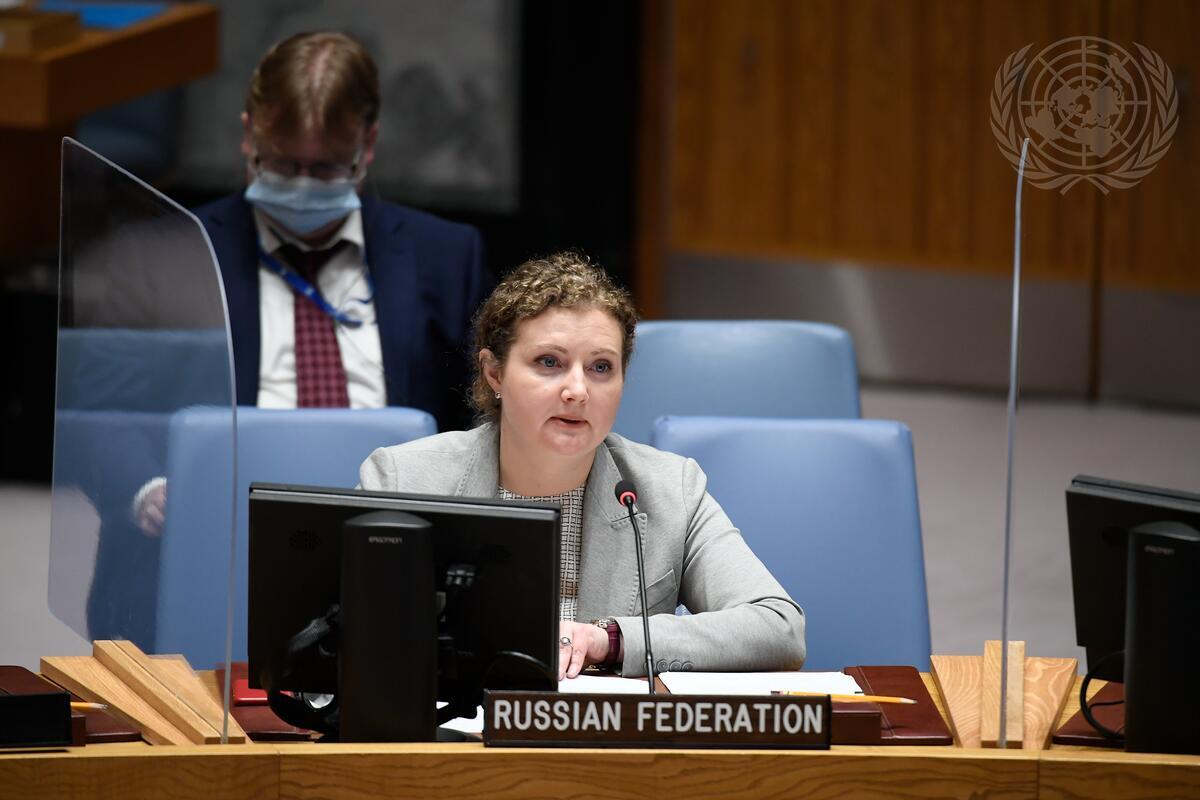 Anna Evstigneeva, Deputy Permanent Representative of Russia to the United Nations, addresses the Security Council meeting on the Central African region.