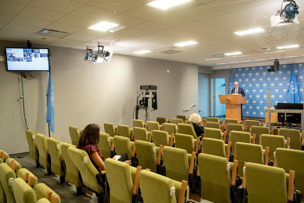 Stéphane Dujarric, Spokesperson for the Secretary-General, briefs reporters both in person and virtually from the press room at UN Headquarters.