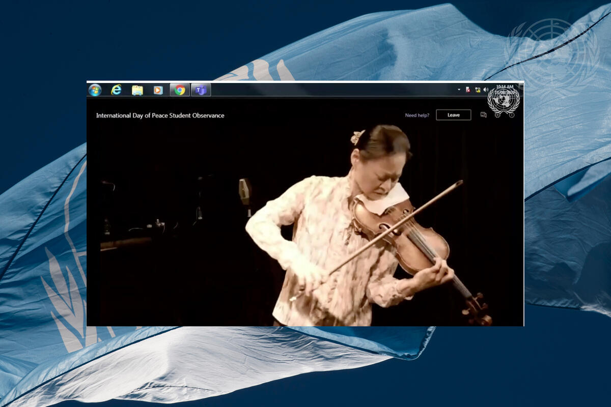 Midori Goto, UN Messenger of Peace, plays music during the International Day of Peace Student Observance.