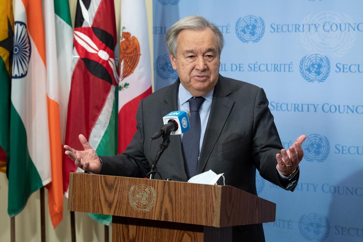 Secretary-General Briefs Press on Afghanistan Outside Security Council Chamber