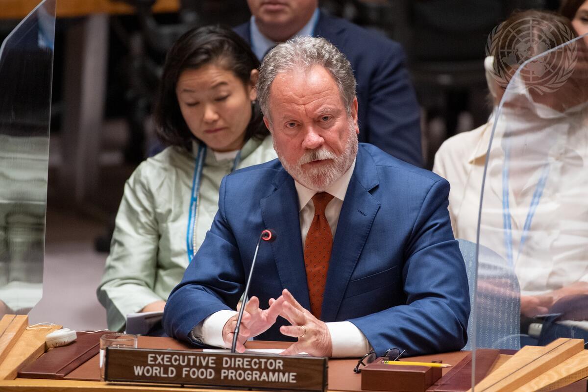 David Beasley, Executive Director of the United Nations World Food Programme, briefs the Security Council meeting on conflict and food security under maintenance of international peace and security.