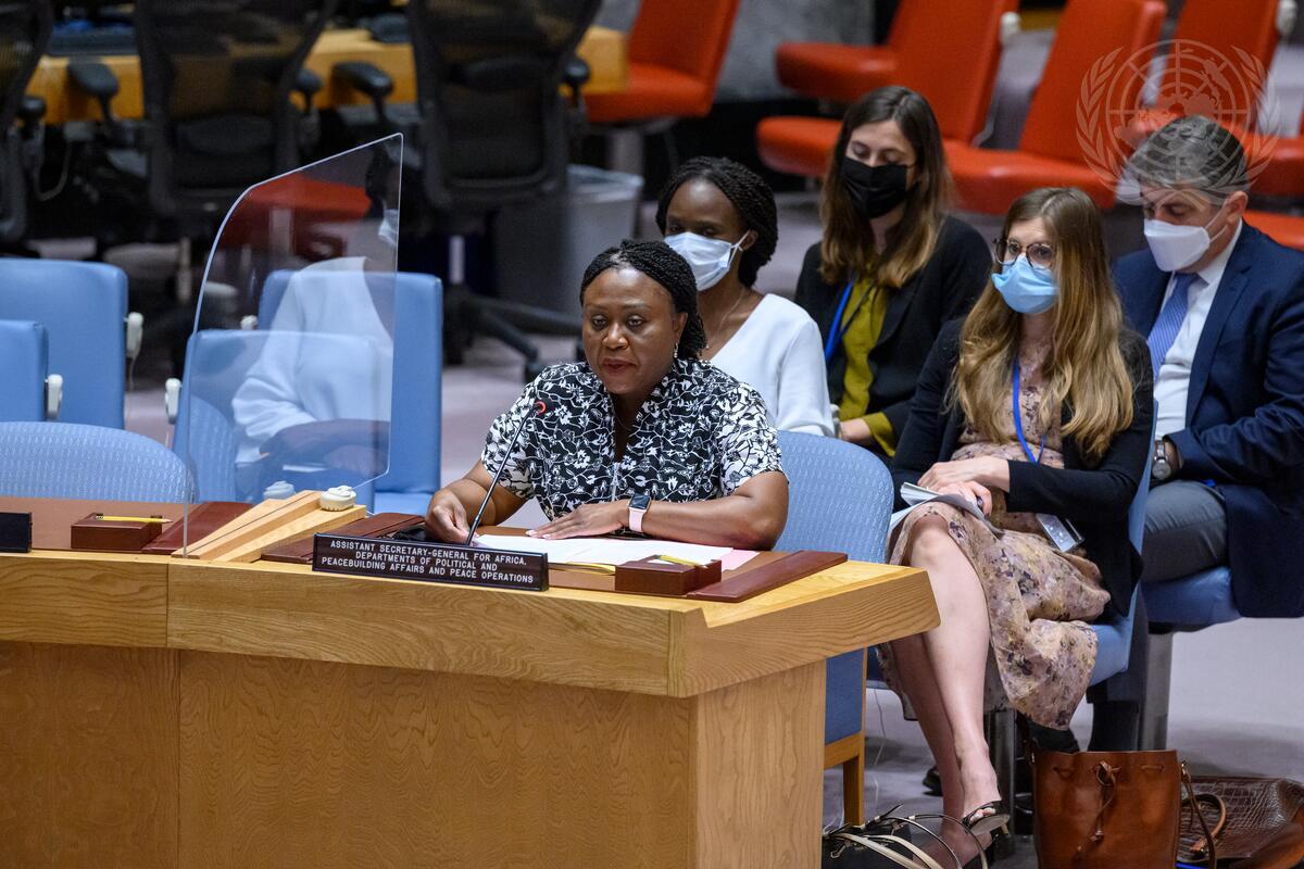 Martha Ama Akyaa Pobee, Assistant Secretary-General for Africa in the Departments of Political and Peacebuilding Affairs and Peace Operations, briefs the Security Council meeting on peace and security in Africa. The Council heard a report of the Secretary-General on the Joint Force of the Group of Five for the Sahel.