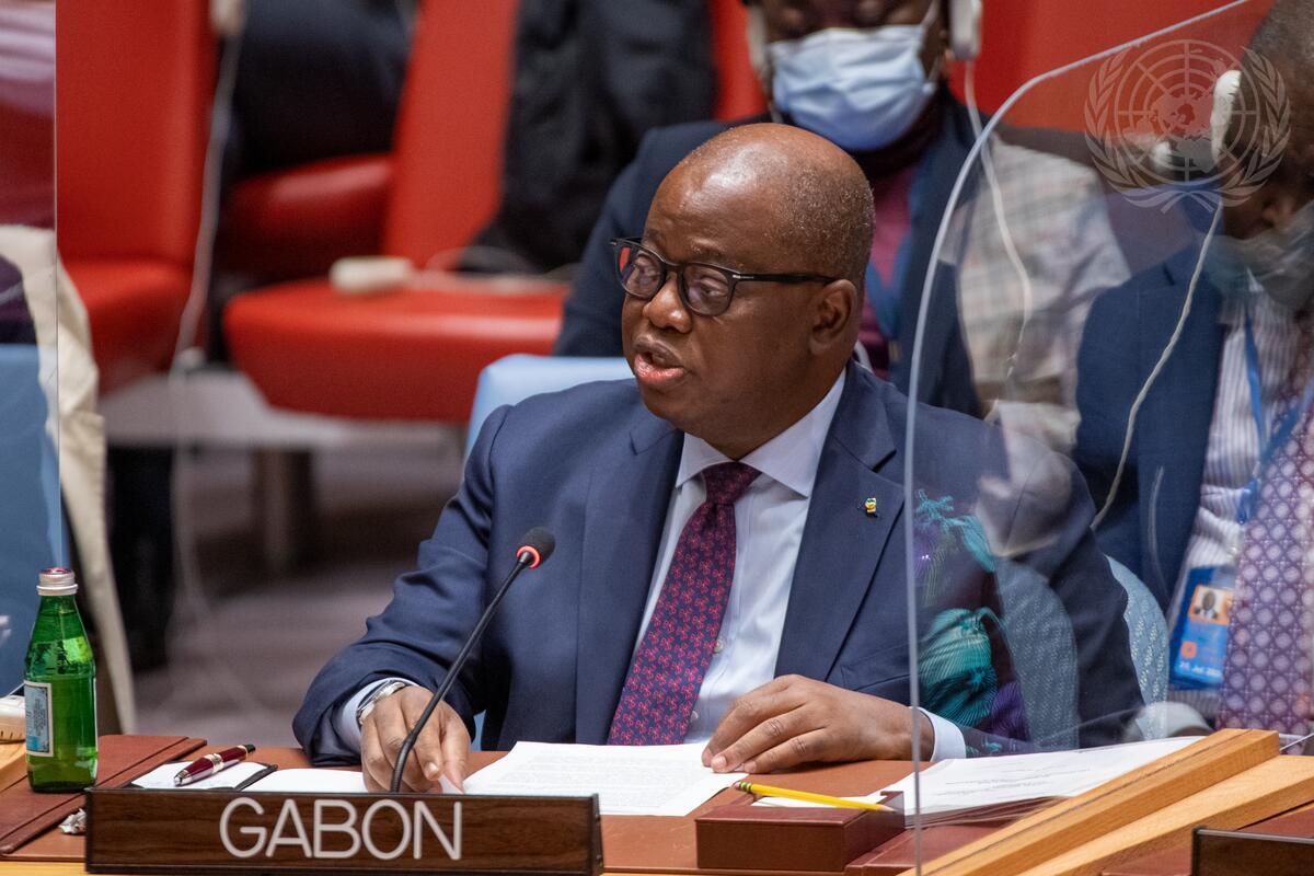 Michael Moussa Adamo, Minister for Foreign Affairs of Gabon, addresses the Security Council meeting on conflict and food security under maintenance of international peace and security.
