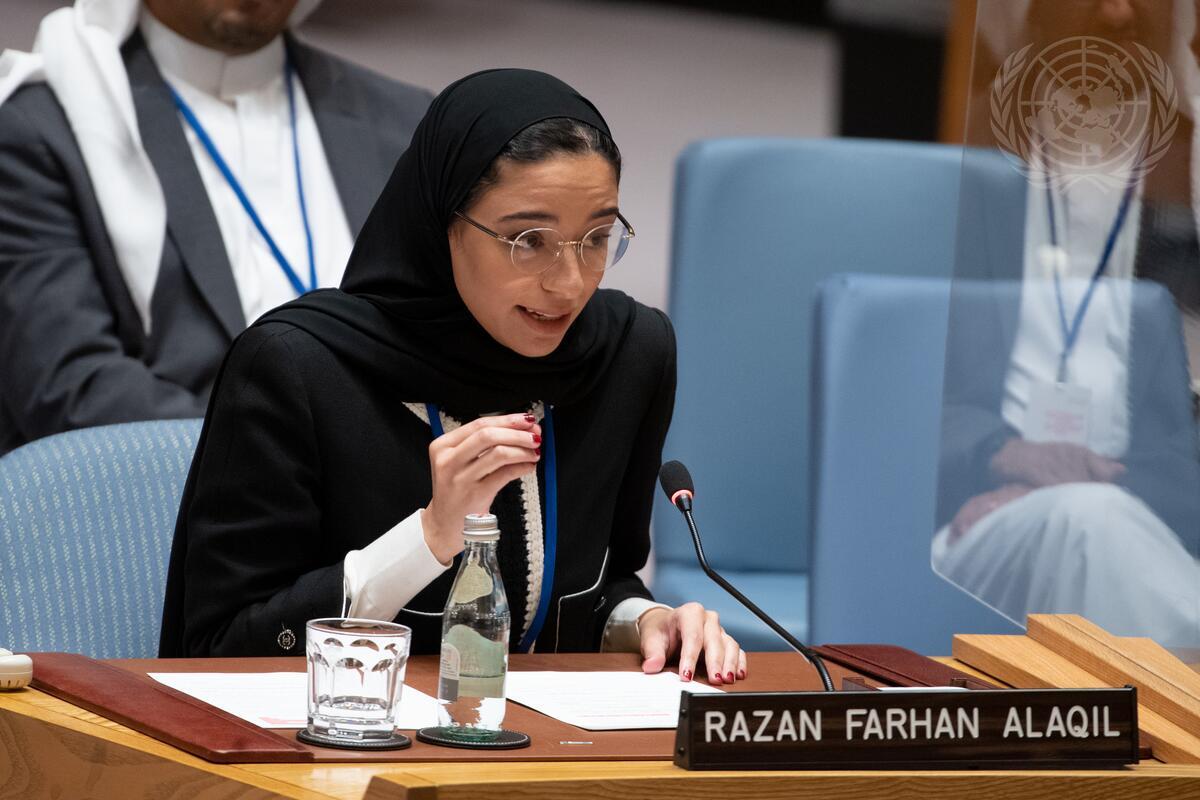 Razan Farhan Alaqil, representative from Civil Society, briefs the Security Council meeting on cooperation between the United Nations and regional and subregional organizations in maintaining international peace and security. The meeting focused on cooperation between the UN and the League of Arab States.
