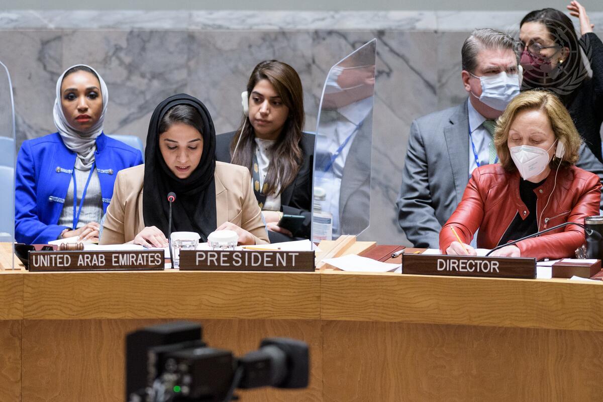 Ameirah Obaid Mohamed Obaid Alhefeiti (left), Deputy Permanent Representative of the United Arab Emirates to the United Nations and President of the Security Council for the month of March, chairs the Security Council meeting on the situation in Afghanistan. The Council heard a report of the Secretary-General on the situation in Afghanistan and its implications for international peace and security. At right is Hasmik Egian, Director of the Security Council Affairs Division of the Department of Political and Peacebuilding Affairs (DPPA).