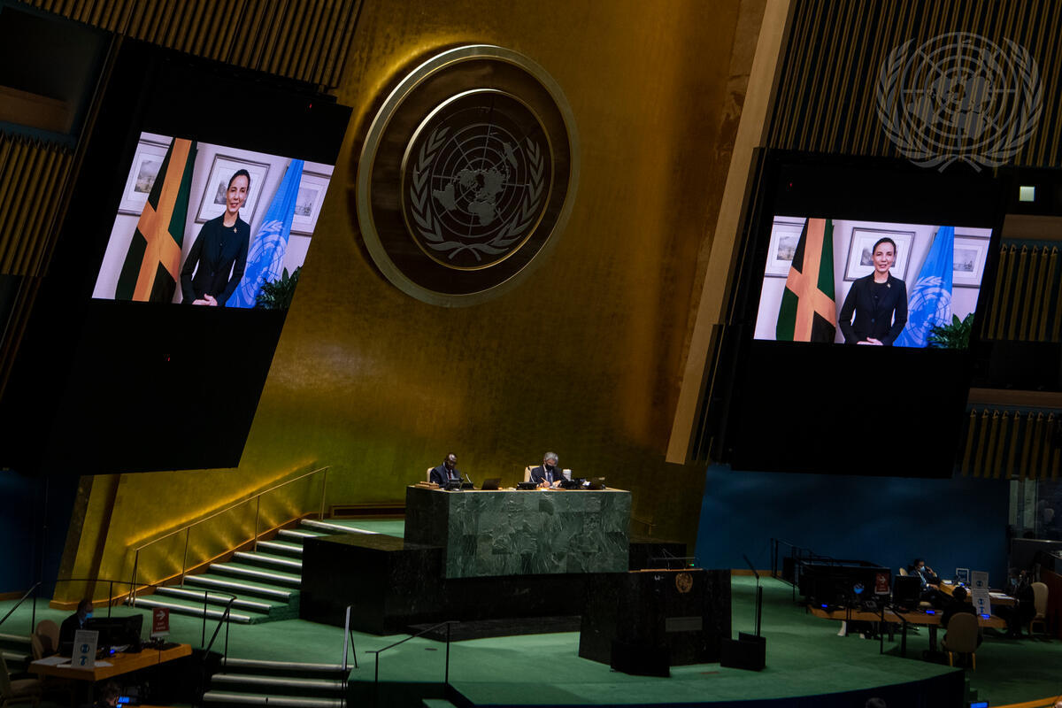 Kamina Johnson Smith, Minister of Foreign Affairs and Foreign Trade of Jamaica, addresses the resumed high-level meeting of the General Assembly to commemorate the seventy-fifth anniversary of the United Nations.