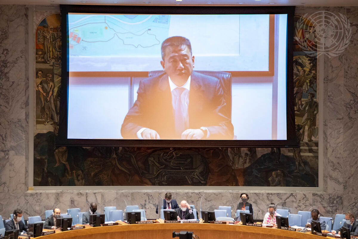 Huang Xia (on screen), Special Envoy of the Secretary-General for the Great Lakes Region, briefs the Security Council meeting on the situation in the Great Lakes region. The meeting heard a report of the Secretary-General on the implementation of the Peace, Security and Cooperation Framework for the Democratic Republic of the Congo and the Region.