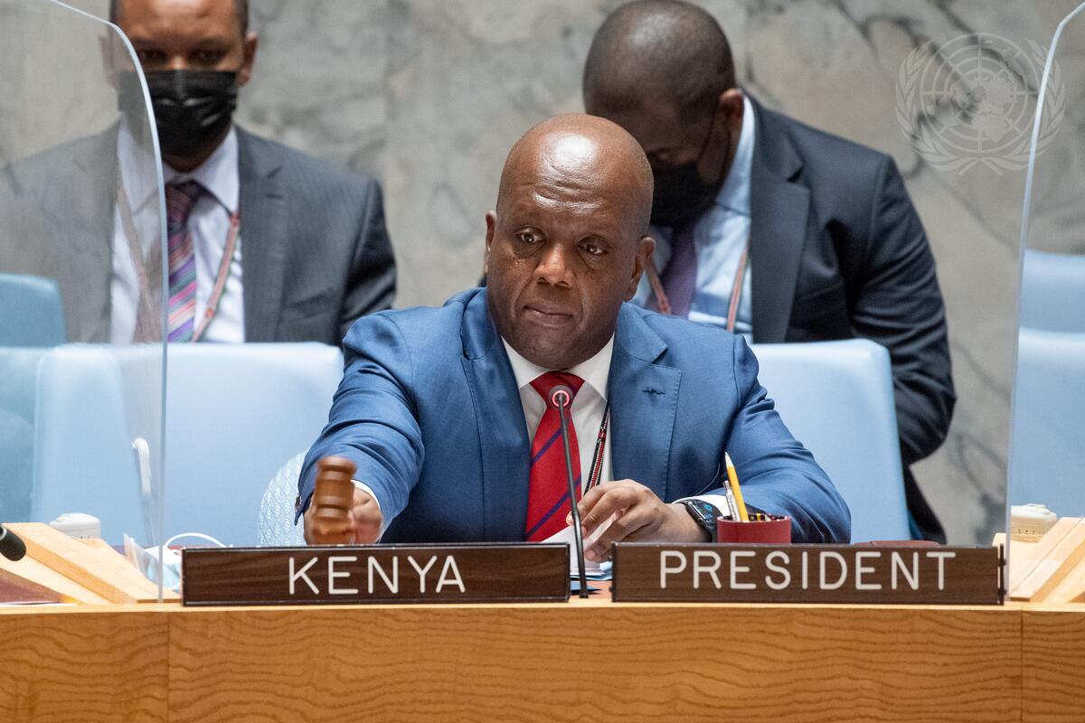 Martin Kimani, Permanent Representative of Kenya to the United Nations and President of the Security Council for the month of October, chairs the Security Council meeting on the situation in Somalia.