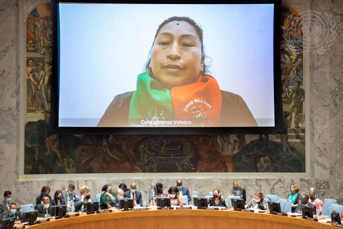 Celia Umenza Velasco, Legal Coordinator for the Indigenous Reservation of Tacueyó and Member of Association of Indigenous Cabildos of the North of Cauca (ACIN), addresses briefs the Security Council meeting on women and peace and security.