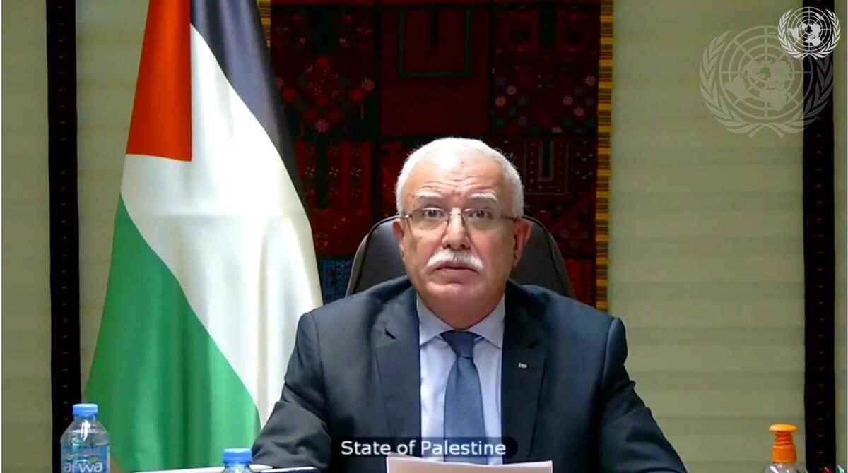 Riad Al-Malki, Minister for Foreign Affairs and Expatriates of the State of Palestine, addresses the videoconference with Security Council members in connection with the Middle East including the Palestinian question.