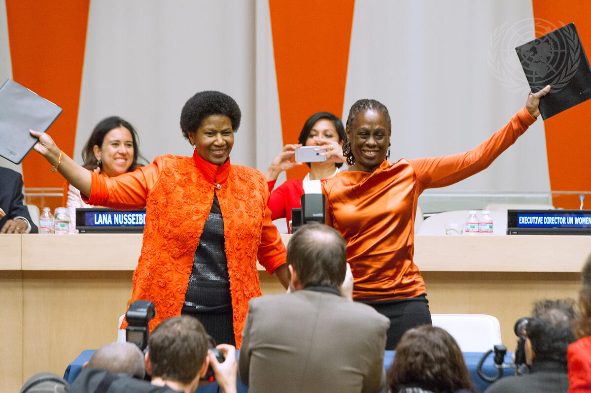 Phumzile Mlambo-Ngcuka (left), Executive Director of the UN Entity for Gender Equality and the Empowerment of Women (UN Women), and Chirlane McCray (right), First Lady of New York City, at the event commemorating the International Day for the Elimination of Violence Against Women (25 November).