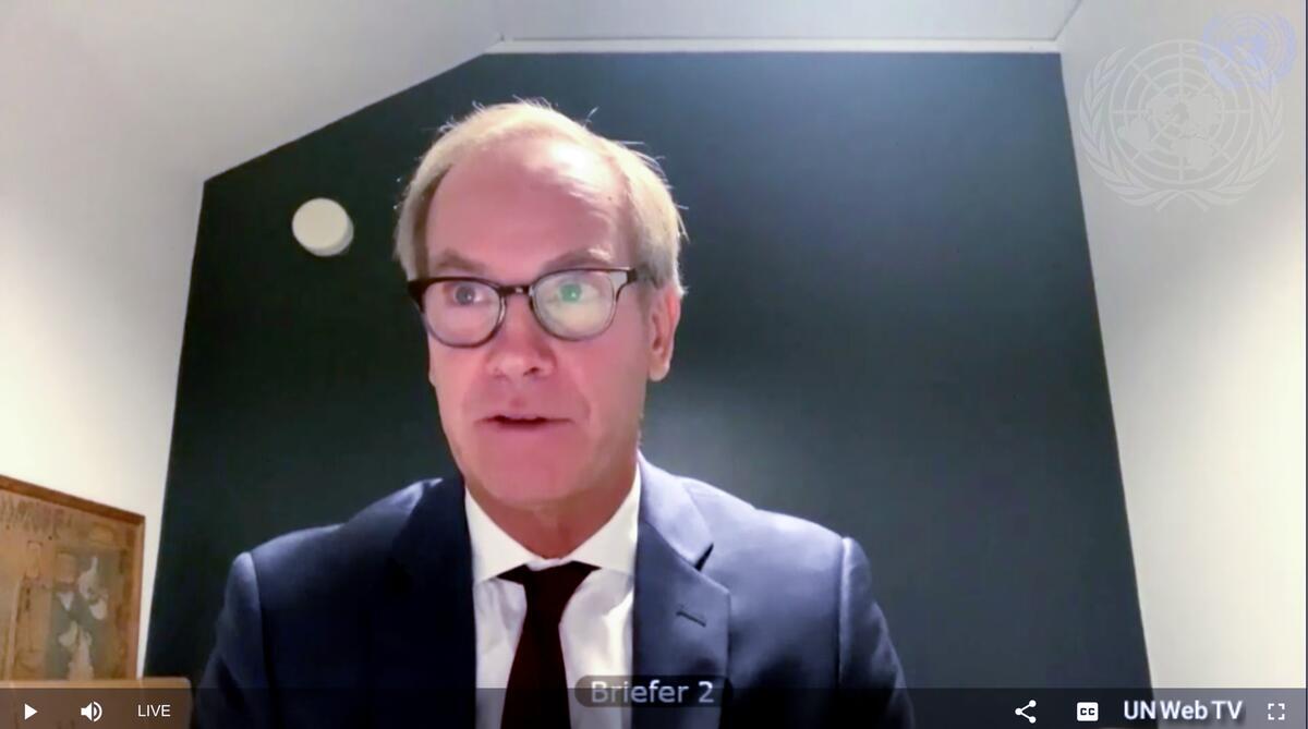 Olof Skoog, Head of the Delegation of the European Union to the United Nations, briefs the videoconference with Security Council members in connection with Non-proliferation.