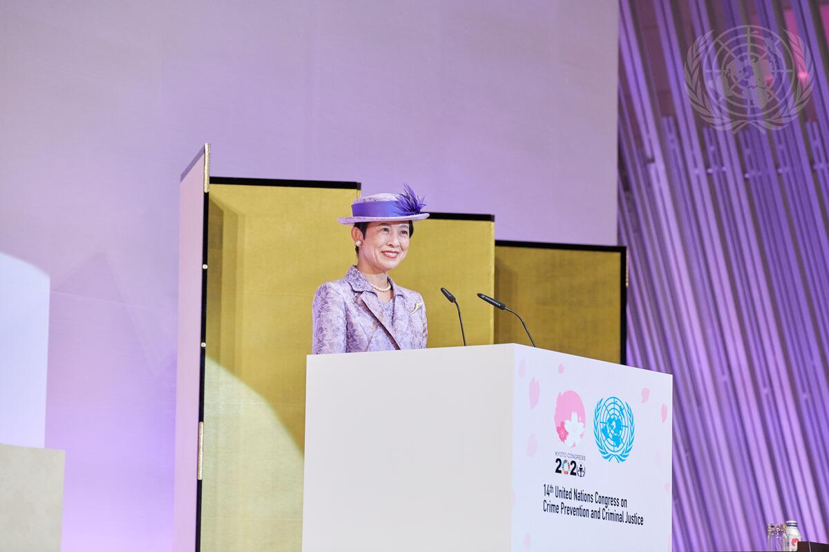 Princess Takamado of japan addresses the high-level segment of the UN Congress on Crime Prevention and Criminal Justice.