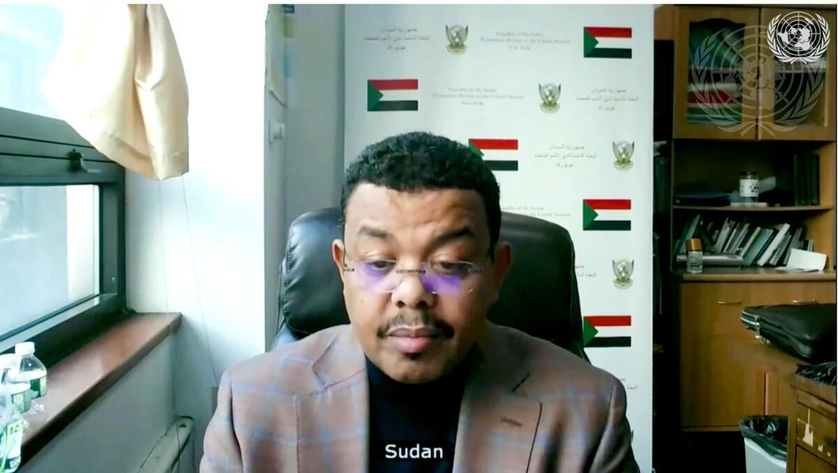 Mohamed Ibrahim Mohamed Elbahi, Charge d' Affaires a.i./Deputy Permanent Representative of Republic of the Sudan, attends the videoconference with Security Council members in connection with the United Nations Integrated Transition Assistance Mission in Sudan (UNITAMS).