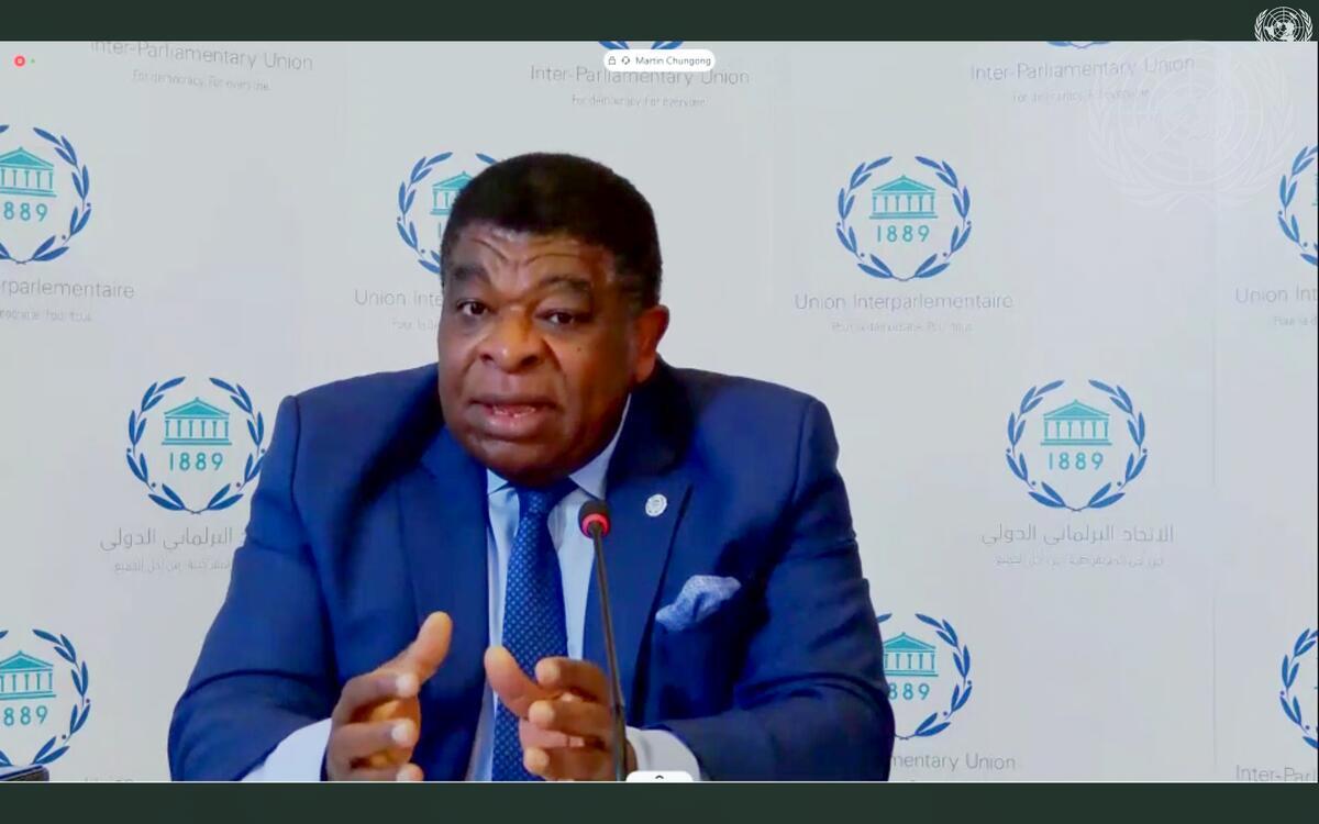 Martin Chungong, Secretary-General of the Inter-Parliamentary Union (IPU), speaks during the virtual press briefing by the Inter-Parliamentary Union and UN Women on the 2021 edition of the Women in Politics Map. Briefing with him was Phumzile Mlambo-Ngcuka, UN Women Executive Director.