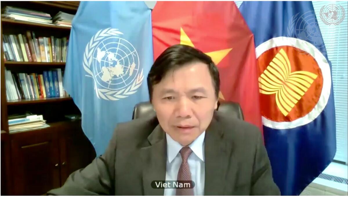 Dang Dinh Quy, Permanent Representative of Viet Nam to the United Nations and President of the Security Council for the month of April, chairs the videoconference with Security Council members in connection with Great Lakes region.