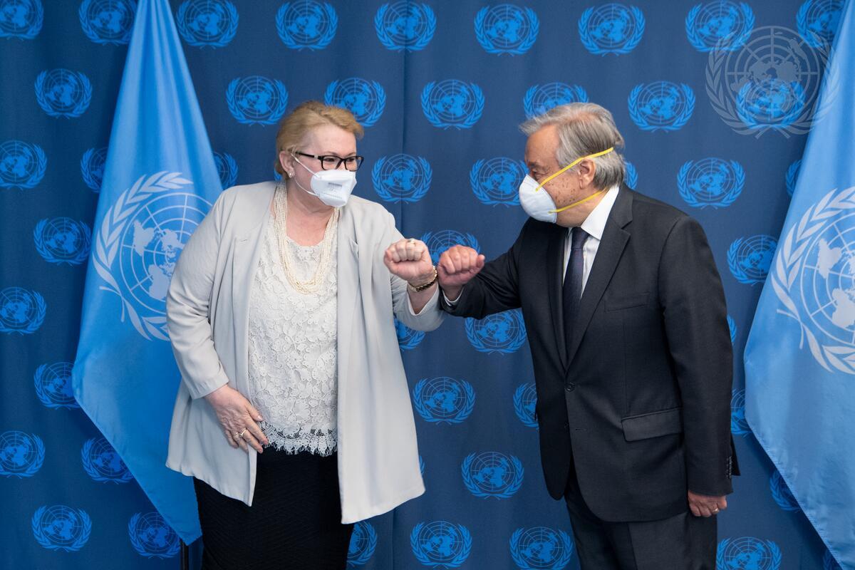 Secretary-General António Guterres (right) meets with Bisera Turković, Deputy Chairperson of the Council of Ministers and Minister for Foreign Affairs of Bosnia and Herzegovina.