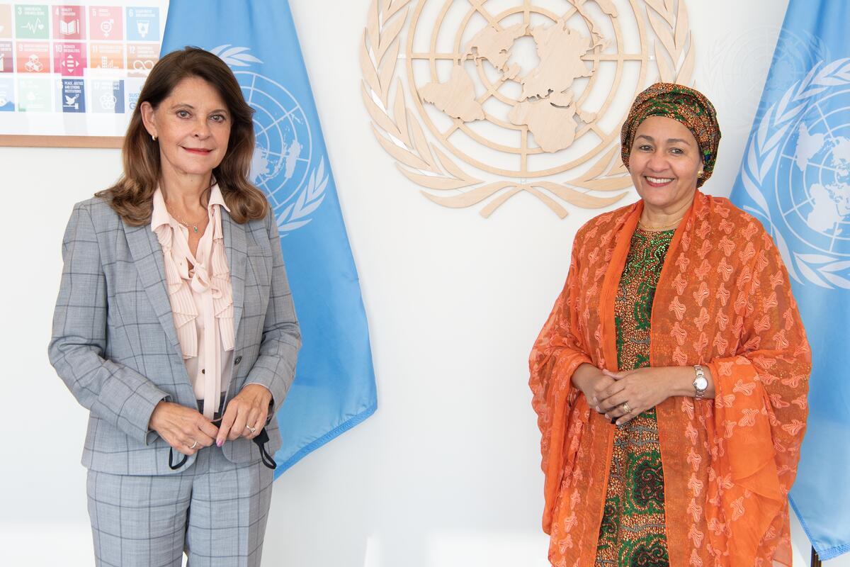 Deputy Secretary-General Amina Mohammed (right) meets with Marta Lucía Ramírez, Vice President and Minister for Foreign Affairs of Colombia.