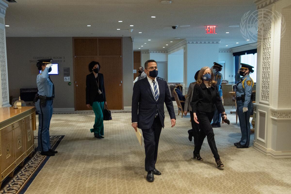 Andreas Hadjichrysanthou, new Permanent Representative of Republic of Cyprus to the United Nations, arrives to pay a courtesy call to Secretary-General António Guterres.