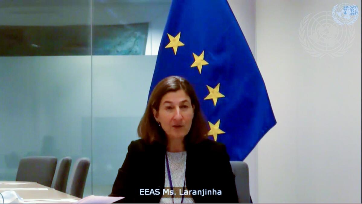 Rita Laranjinha, Managing Director for Africa of the European External Action Service, briefs the videoconference with Security Council members in connection with the United Nations Multidimensional Integrated Stabilization Mission in the Central African Republic (MINUSCA).