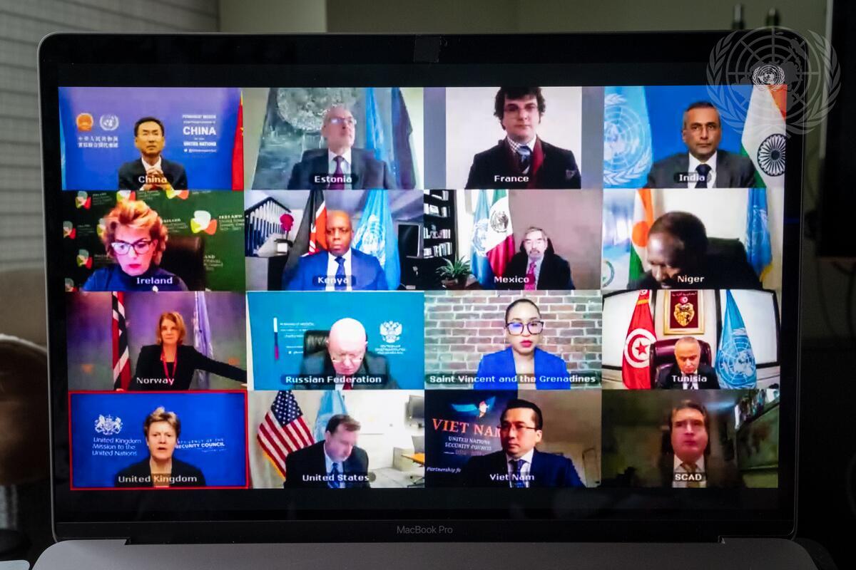 Security Council members hold a videoconference in connection with the adoption of the draft Statement by the President of the Security Council on United Nations Office for West Africa and the Sahel (UNOWAS).
