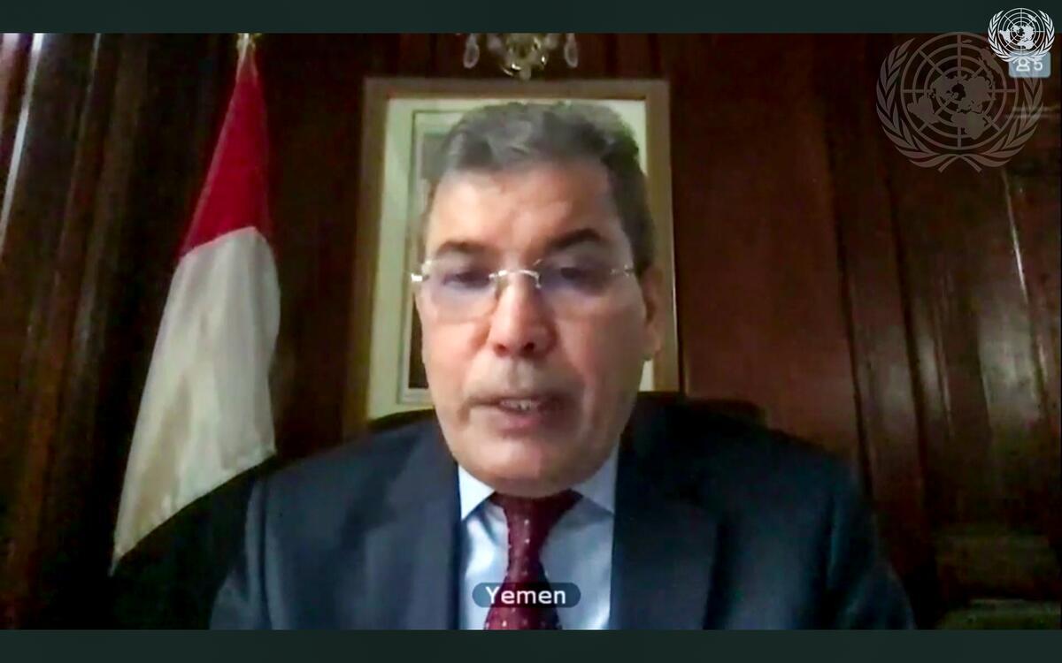 Abdullah Ali Fadhel Al-Saadi, Permanent Representative of Yemen to the United Nations, speaks on the situation in the Middle East (Yemen) and the 2140 Committee during the videoconference with Security Council members.