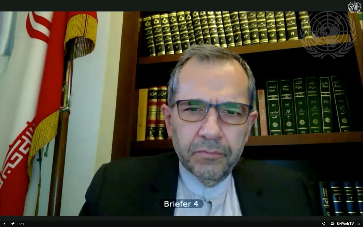 Majid Takht Ravanchi, Permanent Representative of the Islamic Republic of Iran to the United Nations, addresses the videoconference with Security Council members in connection with the Middle East (Syria).
