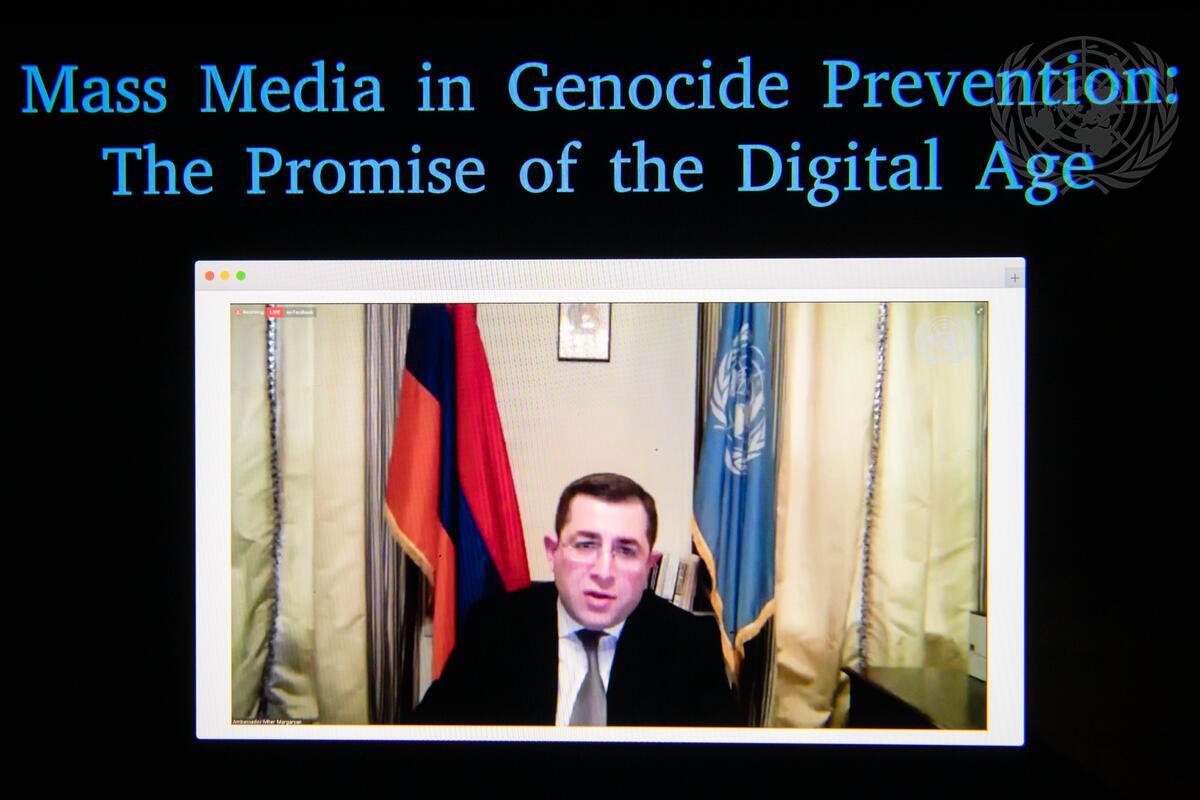 Mher Margaryan, Permanent Representative of Armenia to the United Nations, addresses the event “Mass Media in Genocide Prevention: The Promise and Peril of the Digital Age” on the occasion of the International Day of Commemoration and Dignity of the Victims of the Crime of Genocide and of the Prevention of this Crime.