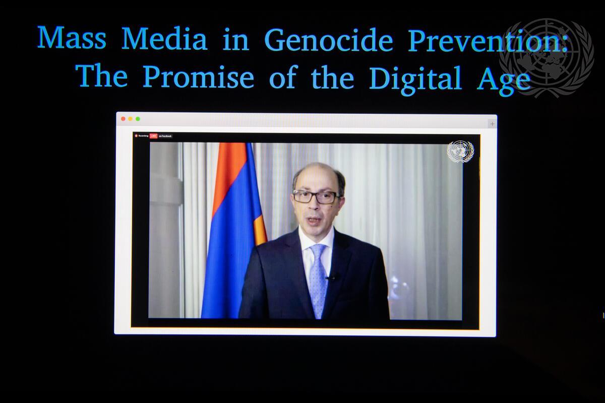 Ara Aivazian, Minister of Foreign Affairs of Armenia, addresses the event “Mass Media in Genocide Prevention: The Promise and Peril of the Digital Age” on the occasion of the International Day of Commemoration and Dignity of the Victims of the Crime of Genocide and of the Prevention of this Crime.