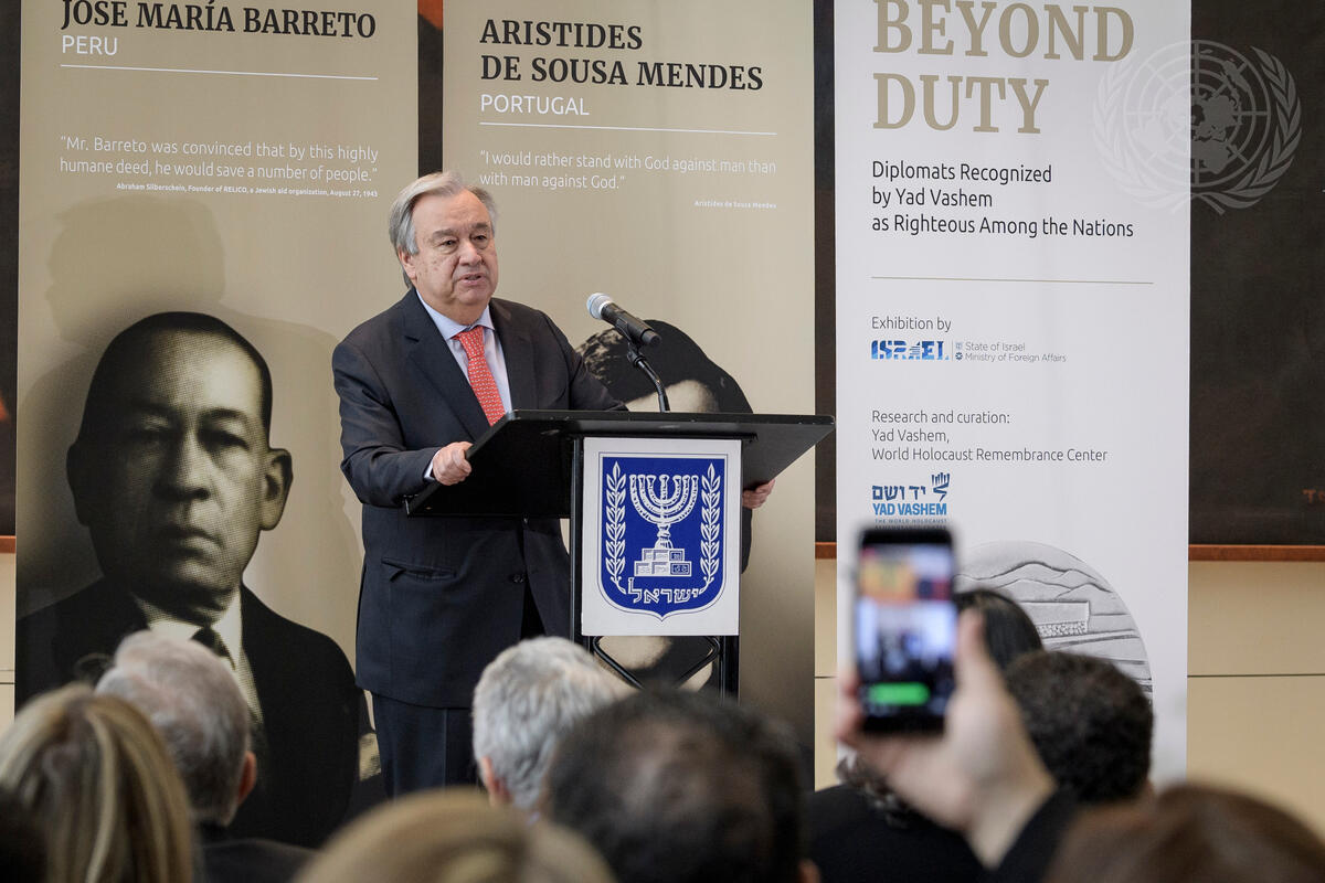 Secretary-General António Guterres makes remarks at the opening of the exhibit "Beyond Duty: Righteous Diplomats among the Nations".