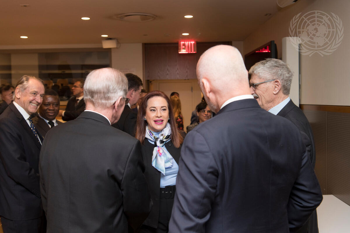 María Fernanda Espinosa Garcés (centre), President of the seventy-third session of the General Assembly, hosts a meeting with former Presidents of the General Assembly (PGA) to discuss the revitalization of the General Assembly.