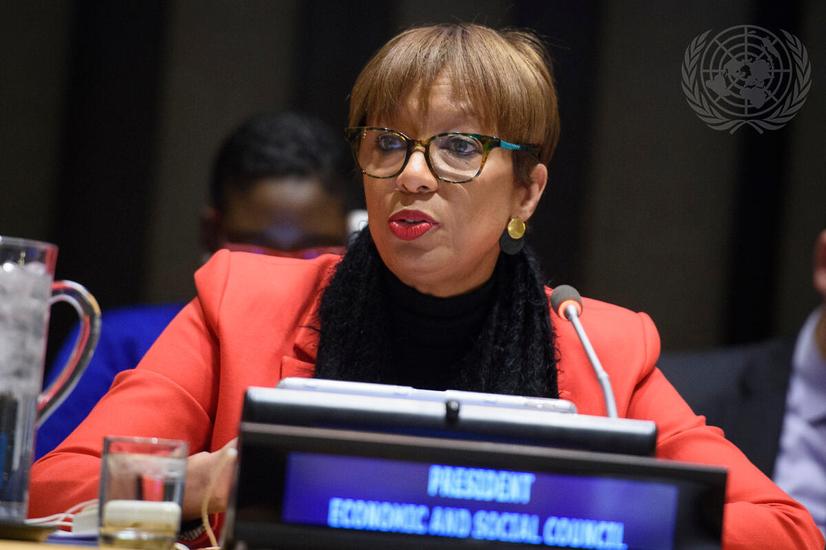 Inga Rhonda King, President of the Economic and Social Council, briefs the audience.