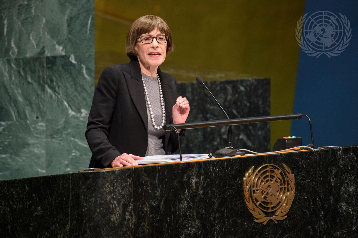 Sara J. Bloomfield, Director of the United States Holocaust Memorial Museum, delivers her keynote speech during the Holocaust Remembrance Ceremony on the theme ""Demand and Defend Your Human Rights"".