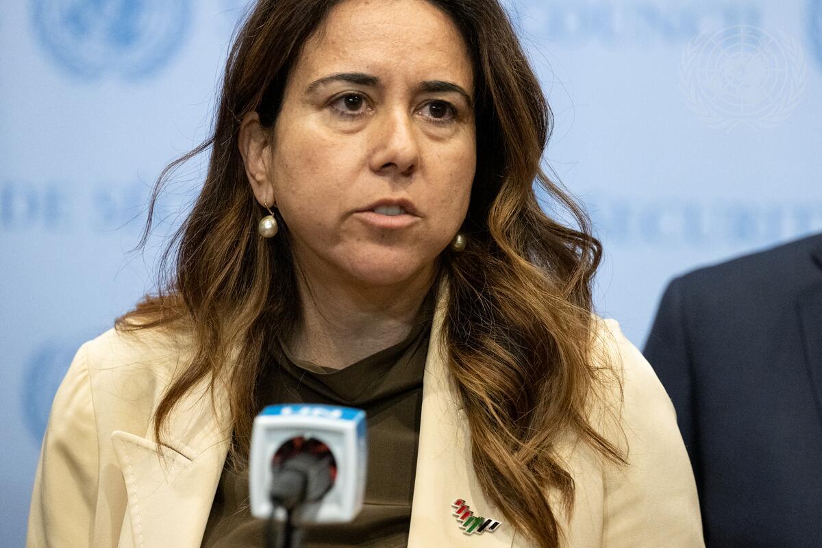 Lana Zaki Nusseibeh, Permanent Representative of the United Arab Emirates to the United Nations and President of the Security Council for the month of June, briefs reporters on latest developments in the Middle East.