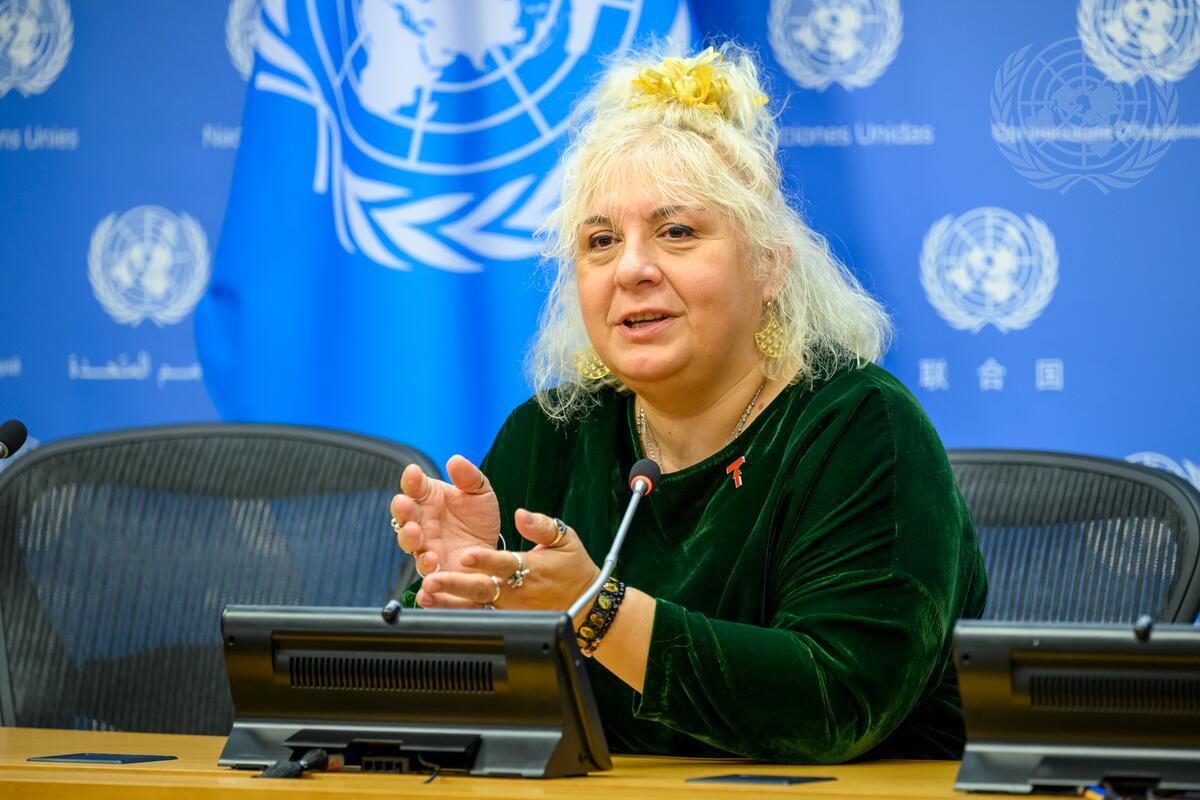 Lucica Ditiu, Executive Director of the Stop TB Partnership, briefs reporters on the global impact of tuberculosis, particularly in conflict areas.
