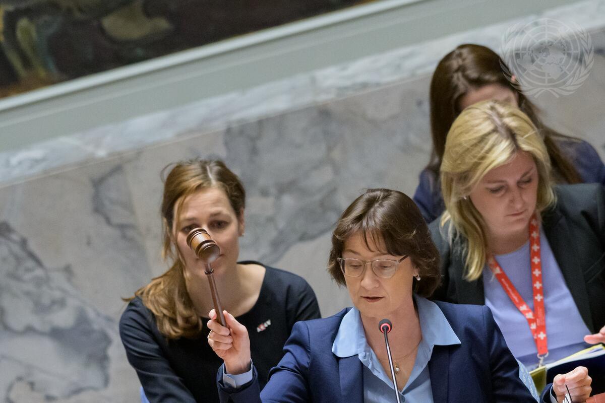Pascale Baeriswyl (front), Permanent Representative of the Swiss Confederation and President of the Security Council for the Month of May, chairs the Security Council meeting on the situation in Bosnia and Herzegovina.