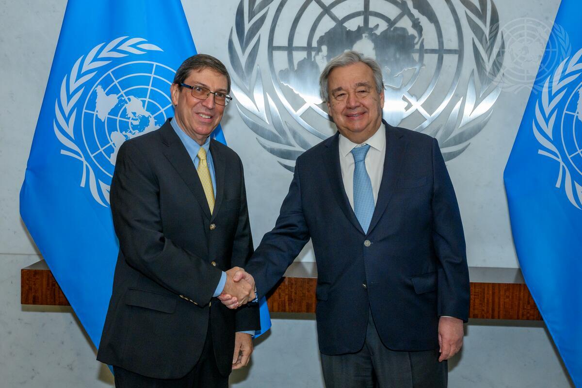 Secretary-General António Guterres (right) meets with Bruno Eduardo Rodríguez Parrilla, Minister for Foreign Affairs of the Republic of Cuba.