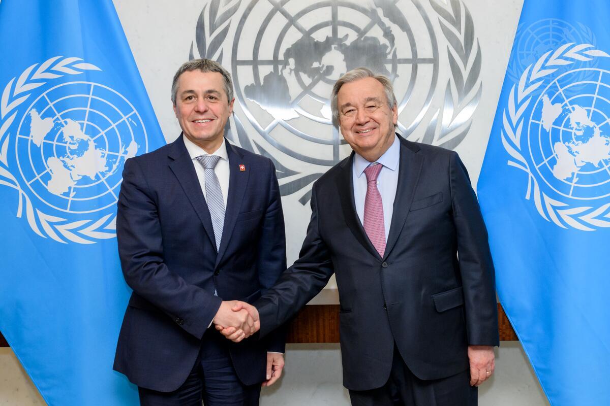 Secretary-General António Guterres (right) meets with Ignazio Cassis, Head of the Federal Department of Foreign Affairs of the Swiss Confederation.