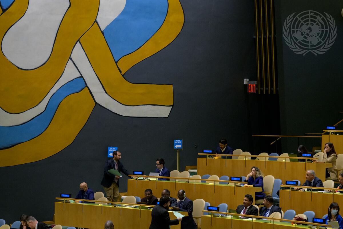 A view of the General Assembly plenary meeting where it considered ”Integrated and coordinated implementation of and follow-up to the outcomes of the major United Nations conferences and summits in the economic, social and related fields” and “Election of the Executive Director of the United Nations Environment Programme (UNEP)”.