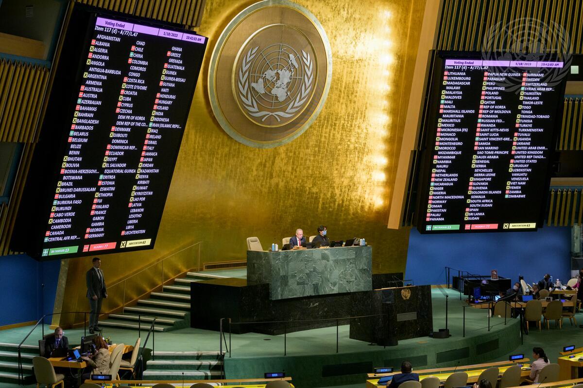 A view of the General Assembly plenary meeting where it considered ”Integrated and coordinated implementation of and follow-up to the outcomes of the major United Nations conferences and summits in the economic, social and related fields” and “Election of the Executive Director of the United Nations Environment Programme (UNEP)”.