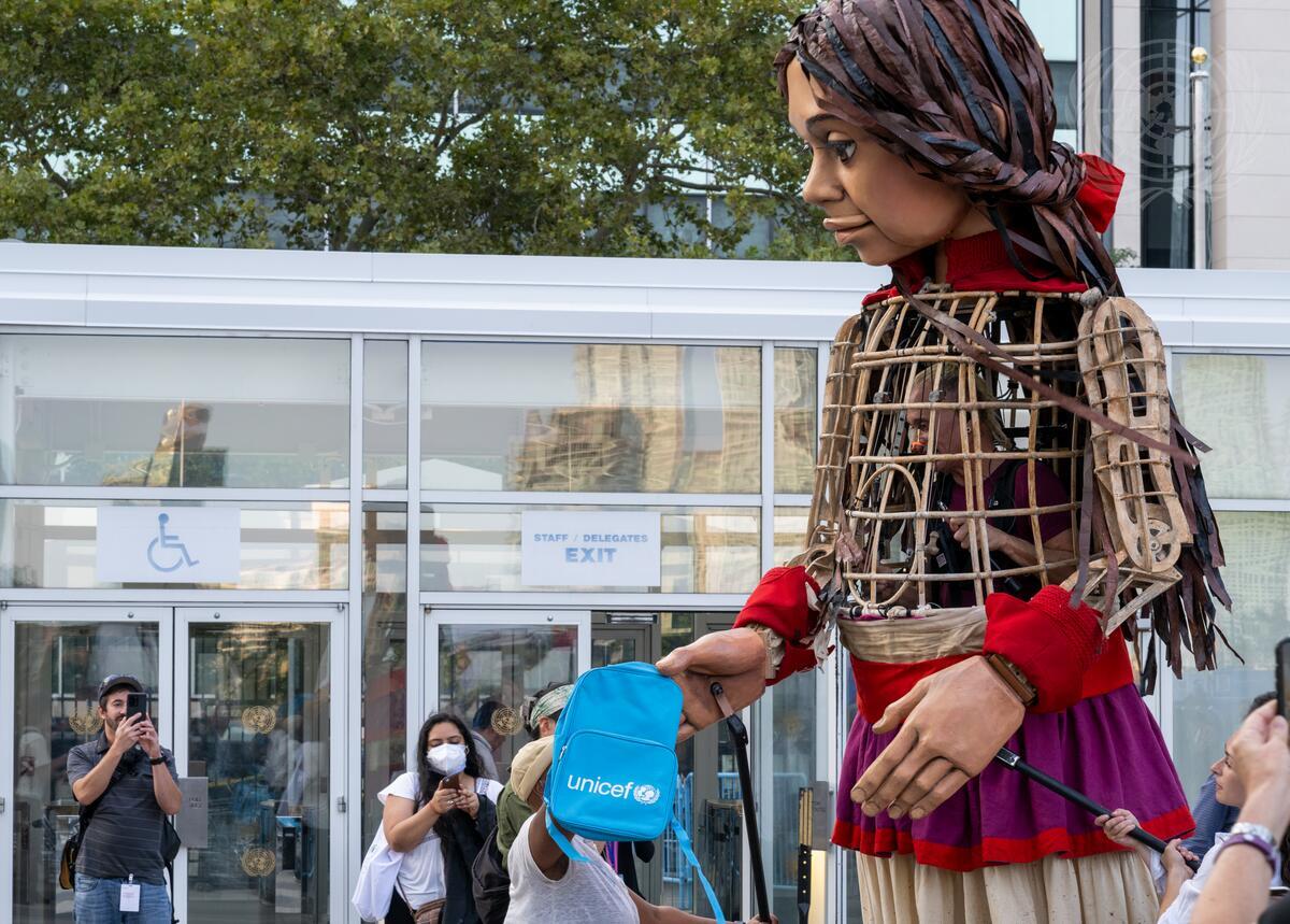 Little Amal is the giant puppet of a 10 year old Syrian refugee girl. Since July 2021 she has travelled over 9,000 km across 12 countries representing all children fleeing war, violence and persecution and each with their own story, Little Amal’s urgent message to the world is “Don’t forget about us”. She is an international symbol of compassion and of human rights and carries a message of hope for displaced people everywhere, especially children who have been separated from their families.