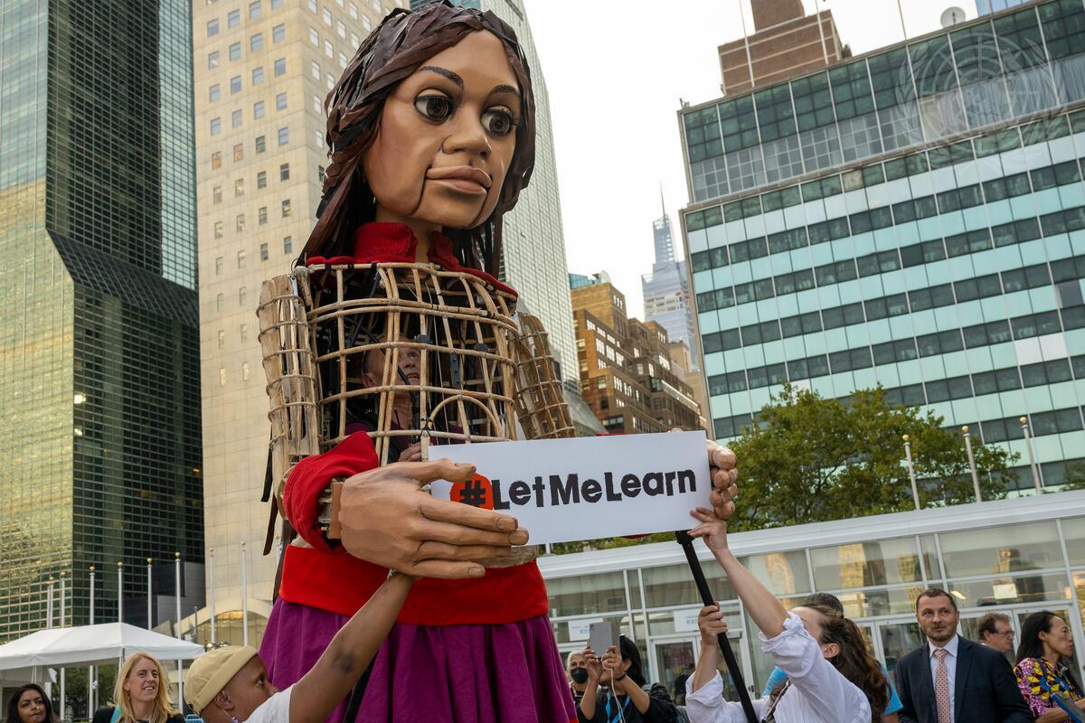 Little Amal is the giant puppet of a 10 year old Syrian refugee girl. Since July 2021 she has travelled over 9,000 km across 12 countries representing all children fleeing war, violence and persecution and each with their own story, Little Amal’s urgent message to the world is “Don’t forget about us”. She is an international symbol of compassion and of human rights and carries a message of hope for displaced people everywhere, especially children who have been separated from their families.