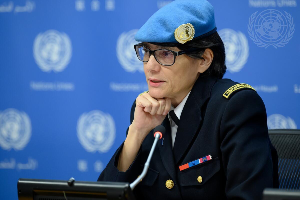 Bettina Patricia Boughani, Police Commissioner of the United Nations Multidimensional Integrated Stabilization Mission in Mali (MINUSMA), briefs reporters on the Third United Nations Chiefs of Police Summit (UNCOPS).