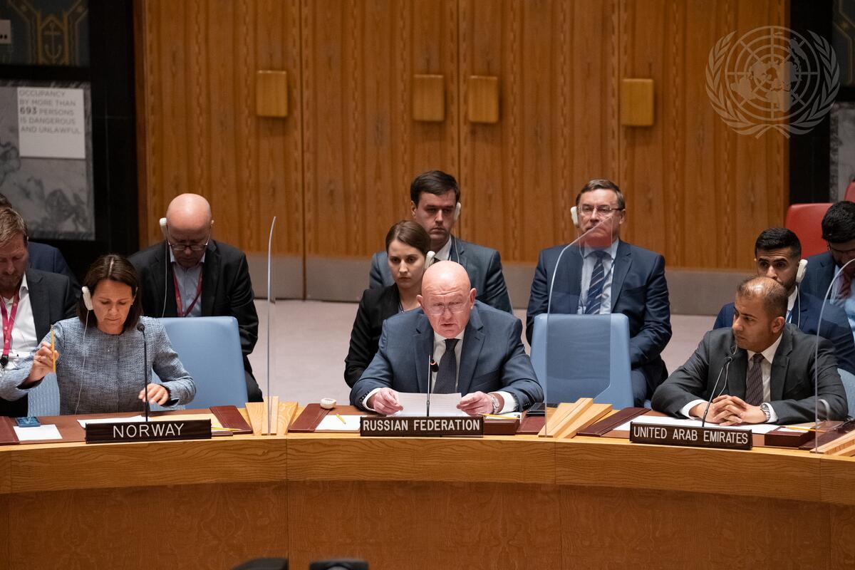 Vassily Nebenzia, Permanent Representative of the Russian Federation to the United Nations, addresses the Security Council meeting on threats to international peace and security.