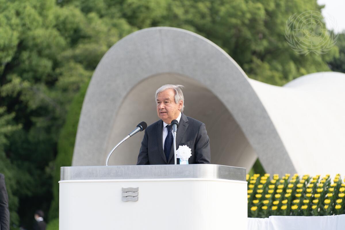 Secretary-General António Guterres delivers a message during a ceremony at the Peace Memorial Museum in Hiroshima during his trip to Japan reiterating his call on world leaders to urgently eliminate stockpiles of nuclear weapons.