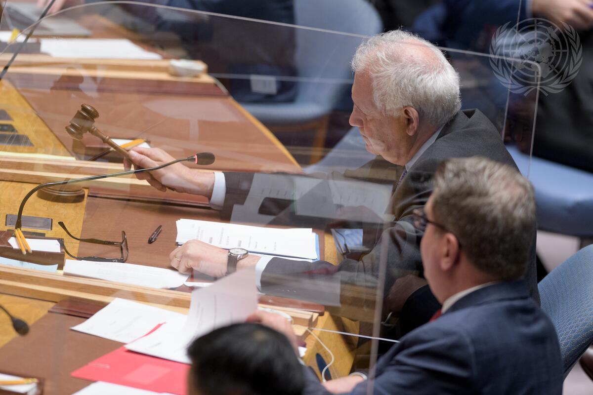 João Genésio de Almeida Filho, Deputy Permanent Representative of Brazil to the United Nations and President of the Security Council for the month of July, chairs the Security Council meeting on the situation in Libya.