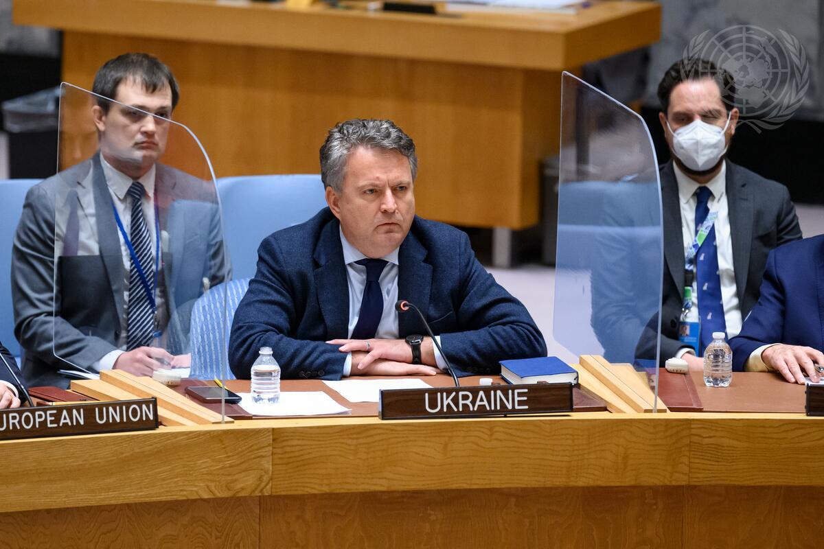 Sergiy Kyslytsya, Permanent Representative of Ukraine to the United Nations, addresses the Security Council meeting on the maintenance of peace and security of Ukraine.